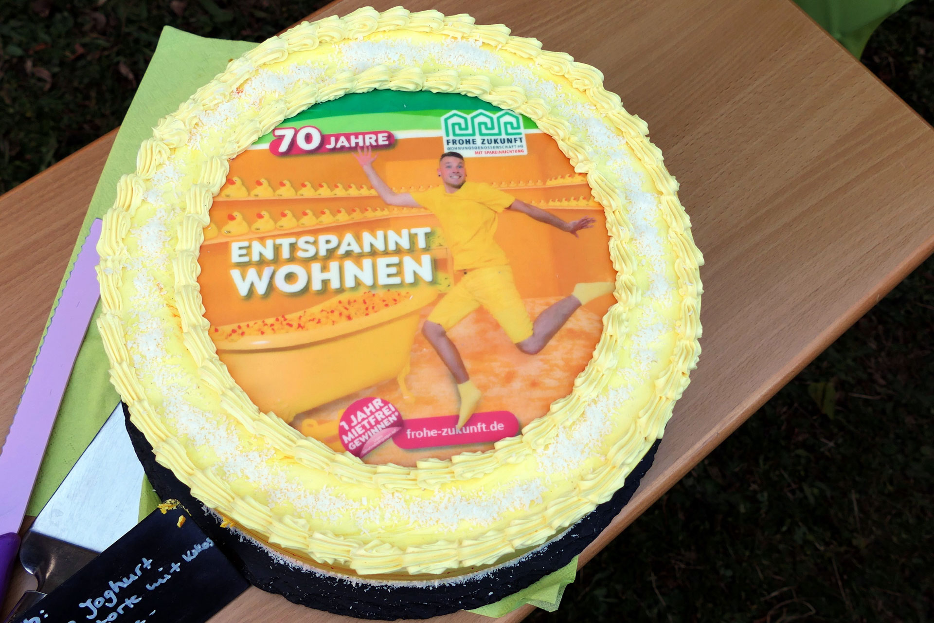 Das größte Geburtstagsgeschenk machte die FROHE ZUKUNFT Wohnungsgenossenschaft eG ihren Mitgliedern: 1 Jahr mietfrei wohnen… konnte jeder gewinnen, der sich auf der Internetseite der Genossenschaft angemeldet hatte! Darüber hinaus gab es 1×1.000 Euro Fahrrad-Gutschein, 5×70 Euro EDEKA-Gutscheine und 5×70 Euro REWE-Gutscheine zu gewinnen.