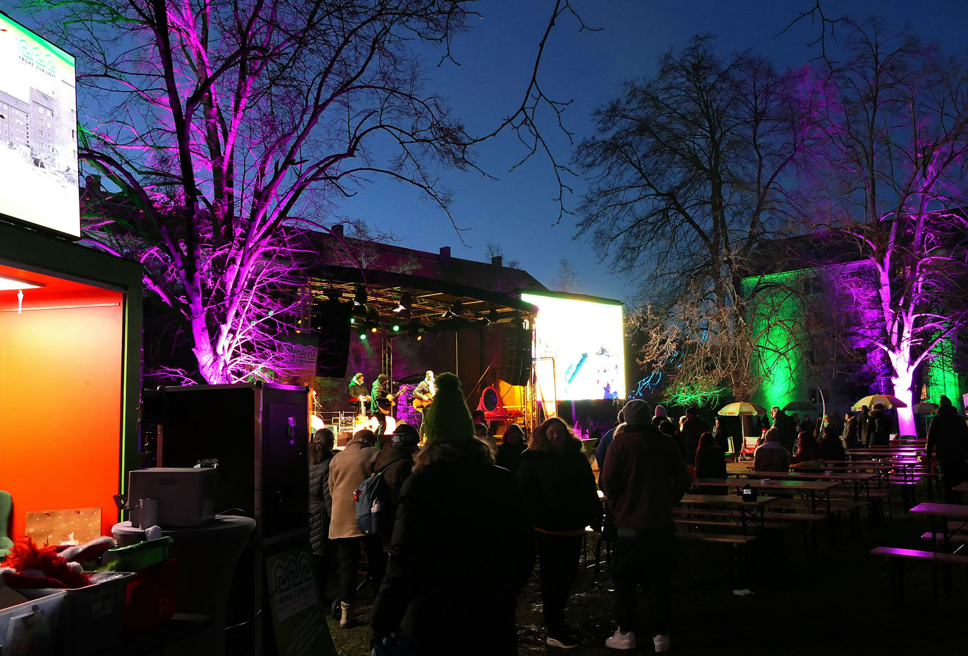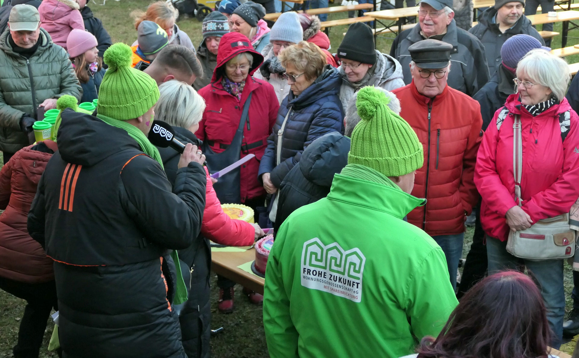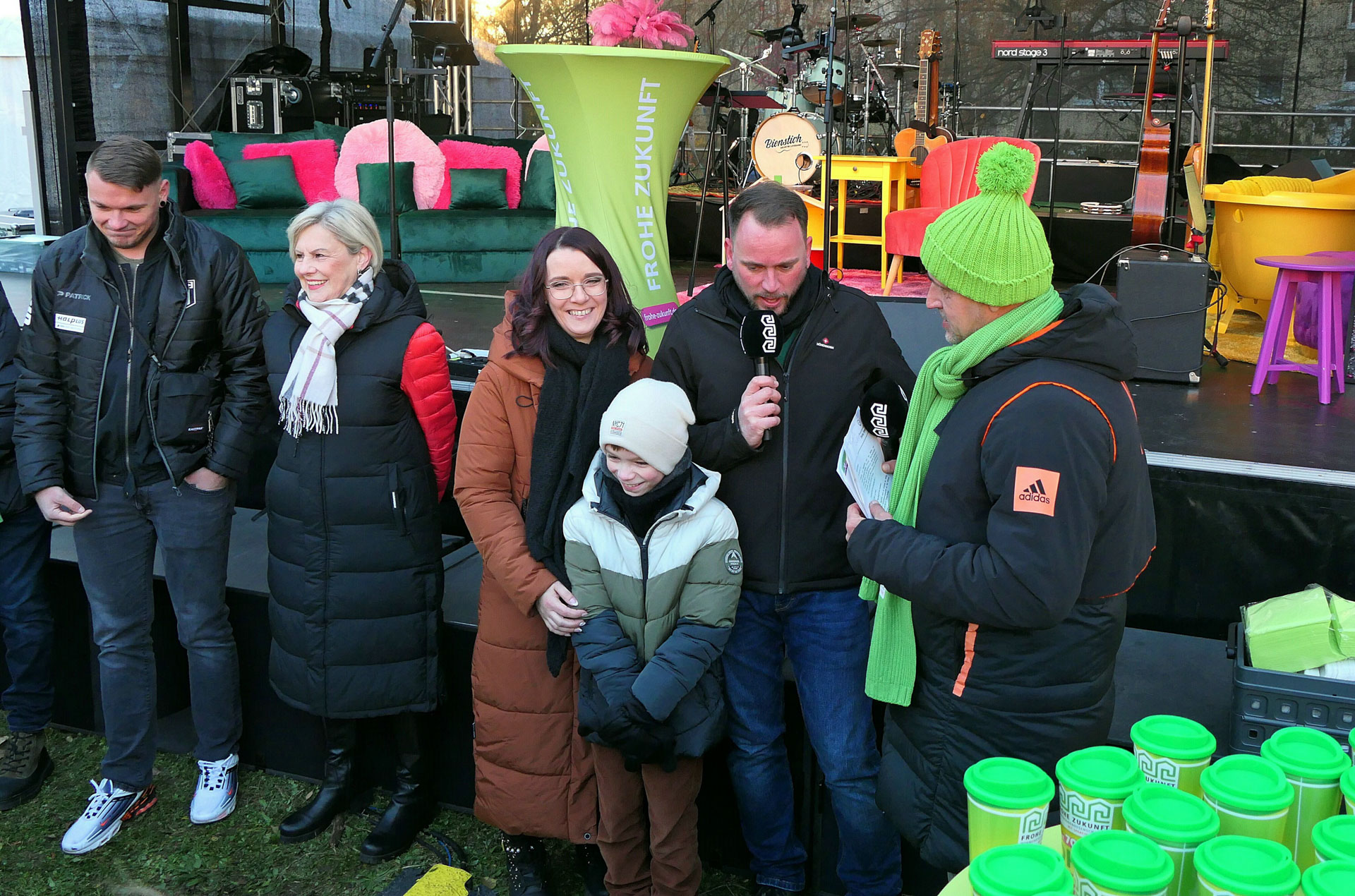 Neben vier Geburtstagstorten von und mit unseren Models aus dem Jubiläumsjahr gab es für die ersten Gäste einen limitierten FROHE ZUKUNFT-Becher geschenkt. An den Foodtrucks von Böllberger, Roy Coffee, Kloster Pforta, Keunecke Fleisch, Geniessbar und der Schaubäckerei Calvörde konnte jeder schlemmen. Egal, ob süße & herzhafte Speisen oder heiße & kalte Getränke – für jeden Geschmack war das richtige dabei. In der beheizten Lounge oder an der Feuerschale konnte es sich jeder gemütlich machen.