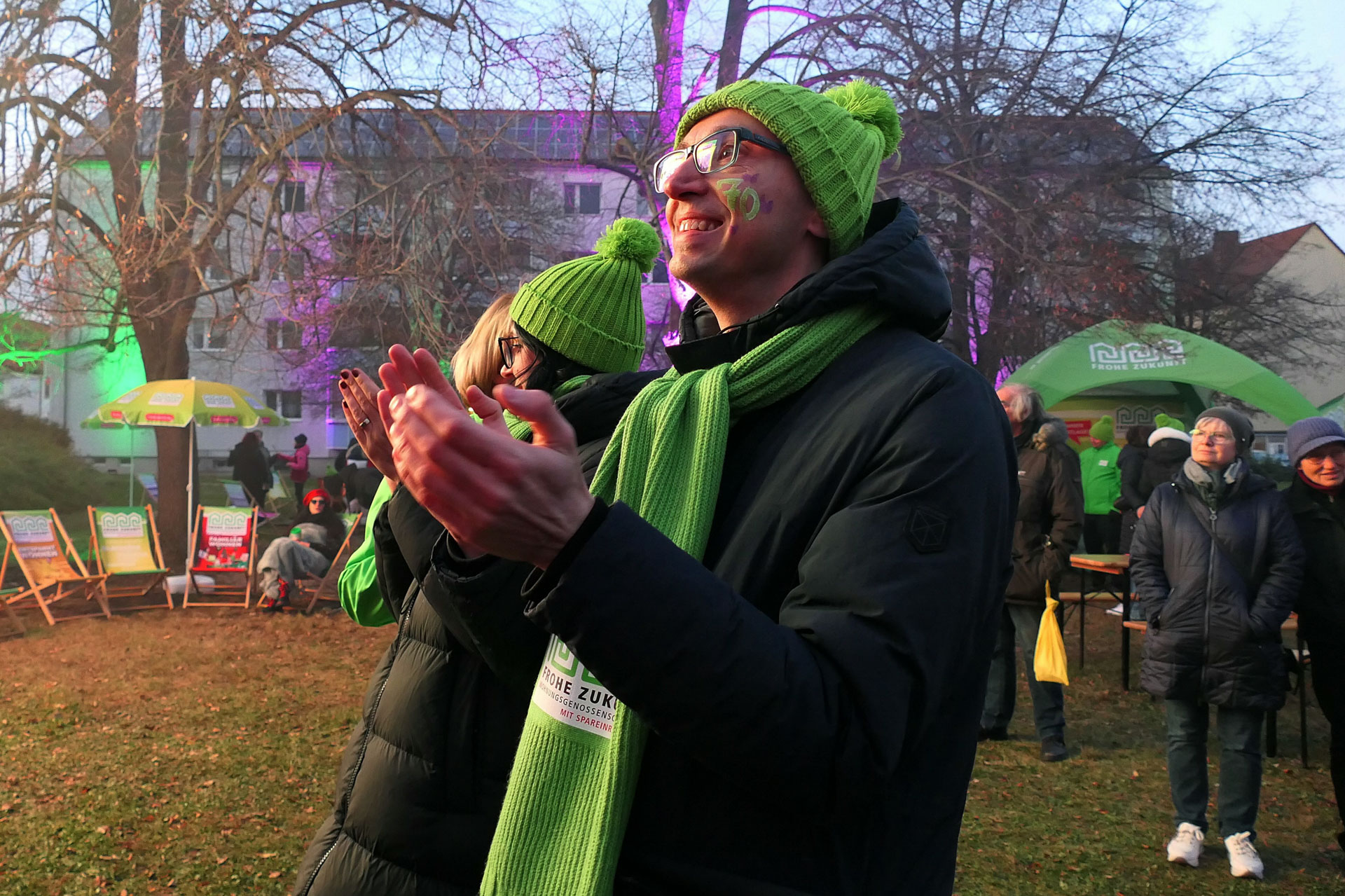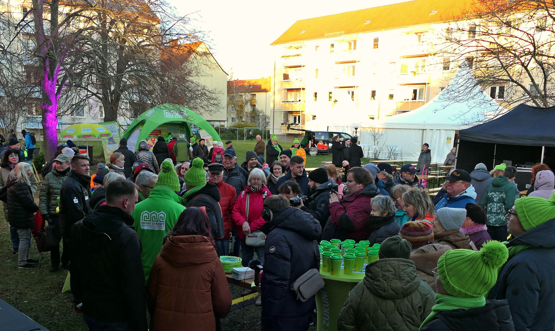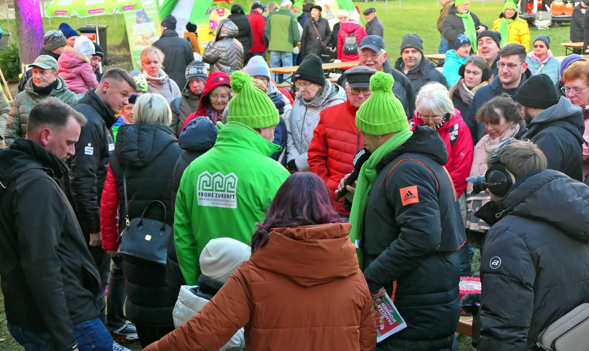 Am Freitag, 22.11.2024 feierten wir ein großes Fest mit all unseren Vertretern und Mitgliedern in der illuminierten Frohen Zukunft mit Sänger Kevin Neon, der Liveband Bienstich, einer großen Feuer- und Lichtshow, einer Autogrammstunde mit den MDR-Moderatoren Anja Petzold und Lars Wohlfarth, Kinderschminken, Büchsenwerfen, Bingo, Glücksrad, Rubbellose, Bingo, Fotobox und einem Laternenumzug.
