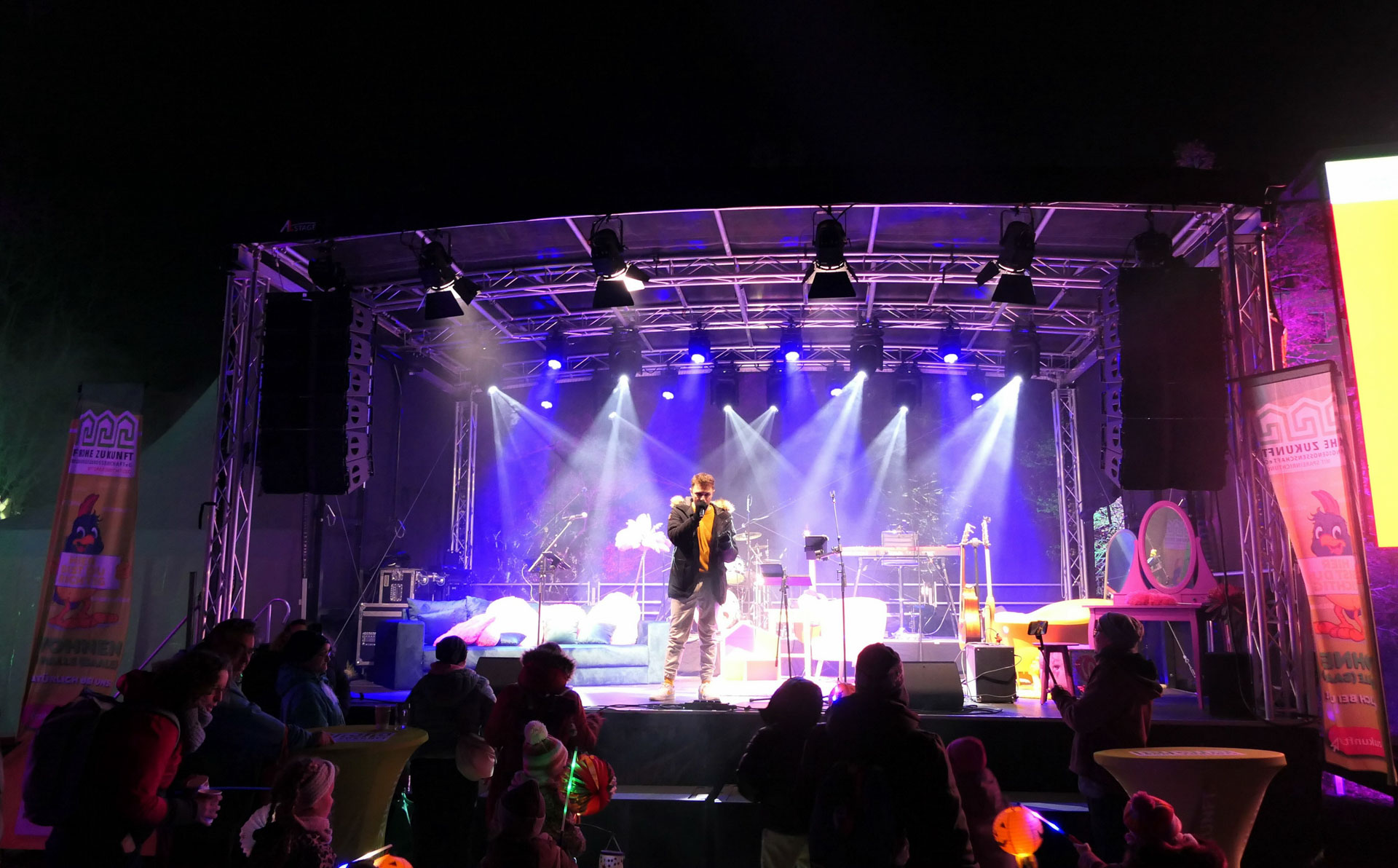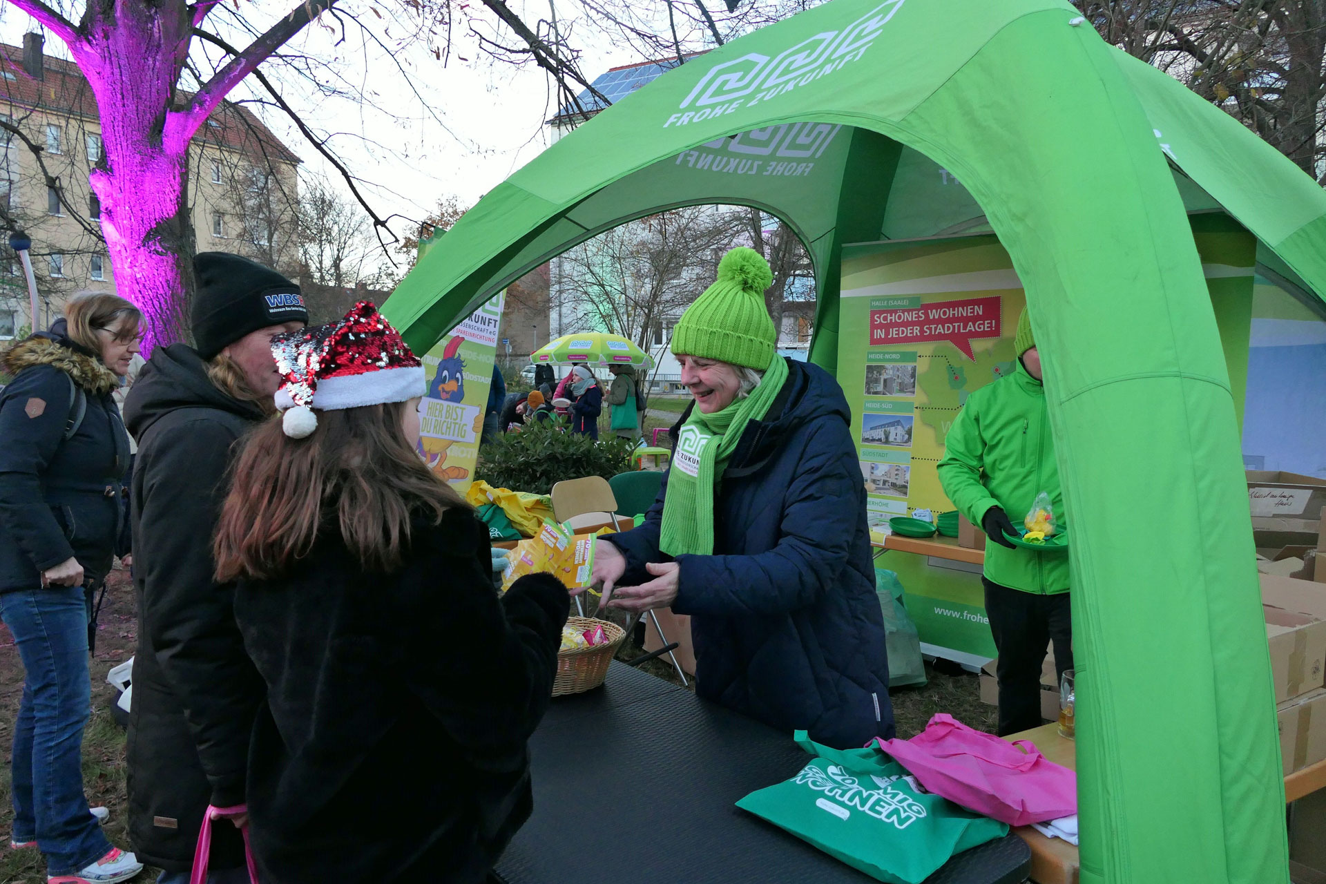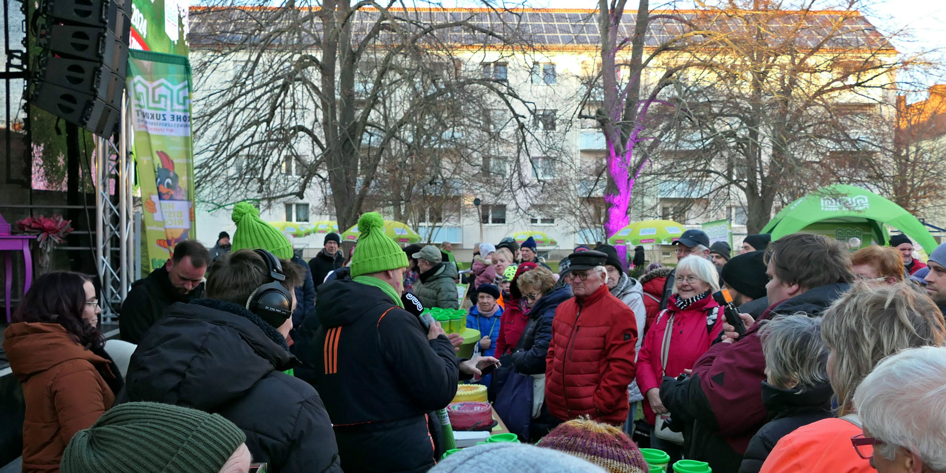 Am Freitag, 22.11.2024 feierten wir ein großes Fest mit all unseren Vertretern und Mitgliedern in der illuminierten Frohen Zukunft mit Sänger Kevin Neon, der Liveband Bienstich, einer großen Feuer- und Lichtshow, einer Autogrammstunde mit den MDR-Moderatoren Anja Petzold und Lars Wohlfarth, Kinderschminken, Büchsenwerfen, Bingo, Glücksrad, Rubbellose, Bingo, Fotobox und einem Laternenumzug.