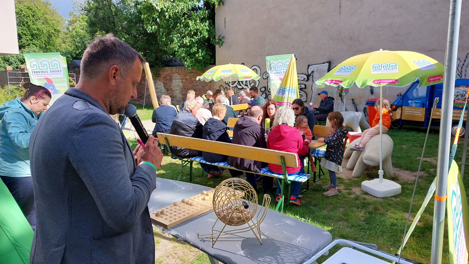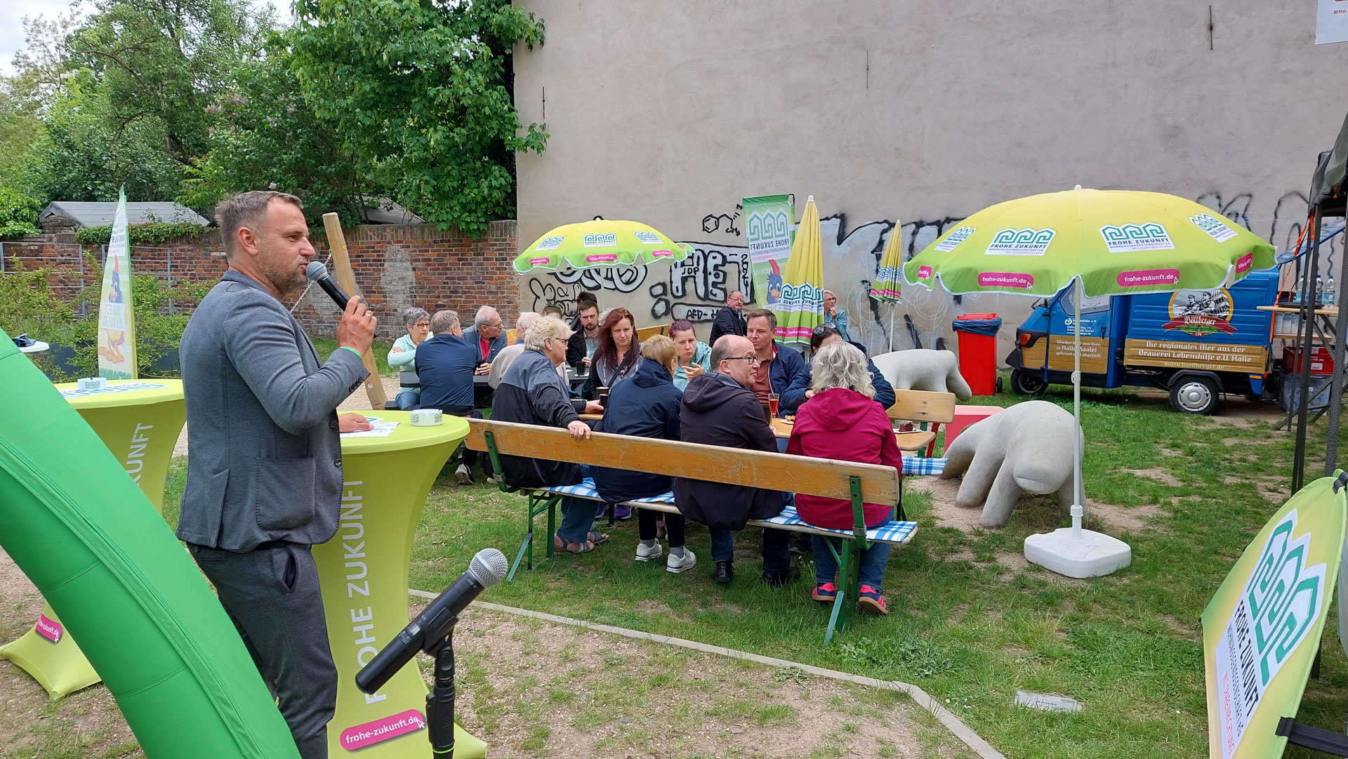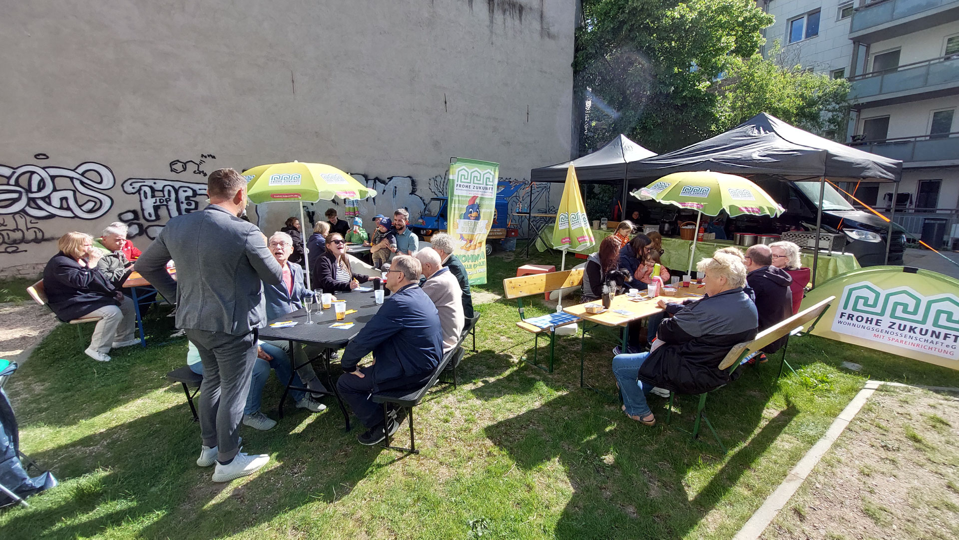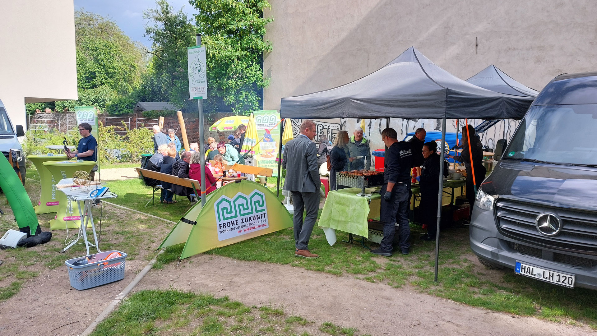 Donnerstag, 15. Mai 2025 – Unsere Bewohnerfest-Tour machte heute Station im Paulusviertel. 🤗 15 Uhr gings los mit Kuchen und Kaffee von Coffee Roy – ausgezeichnet mit dem Kulinarischen Stern Sachsen-Anhalts. Ebenso prämiert das Böllberger Bier von der Lebenshilfe Halle. Das Lebenshilfe-Team sorgte auch für kulinarische Köstlichkeiten vom Grill. Für die Gäste nur das Beste! 👌