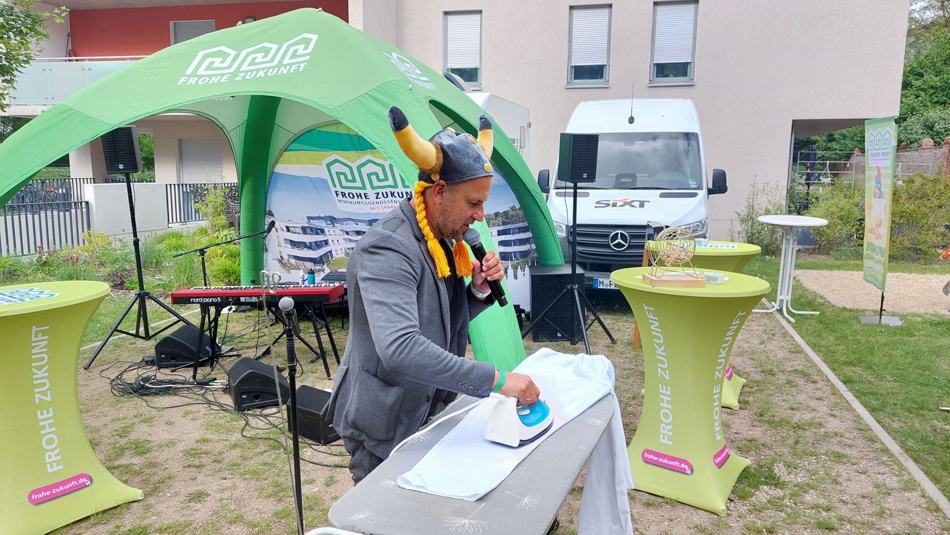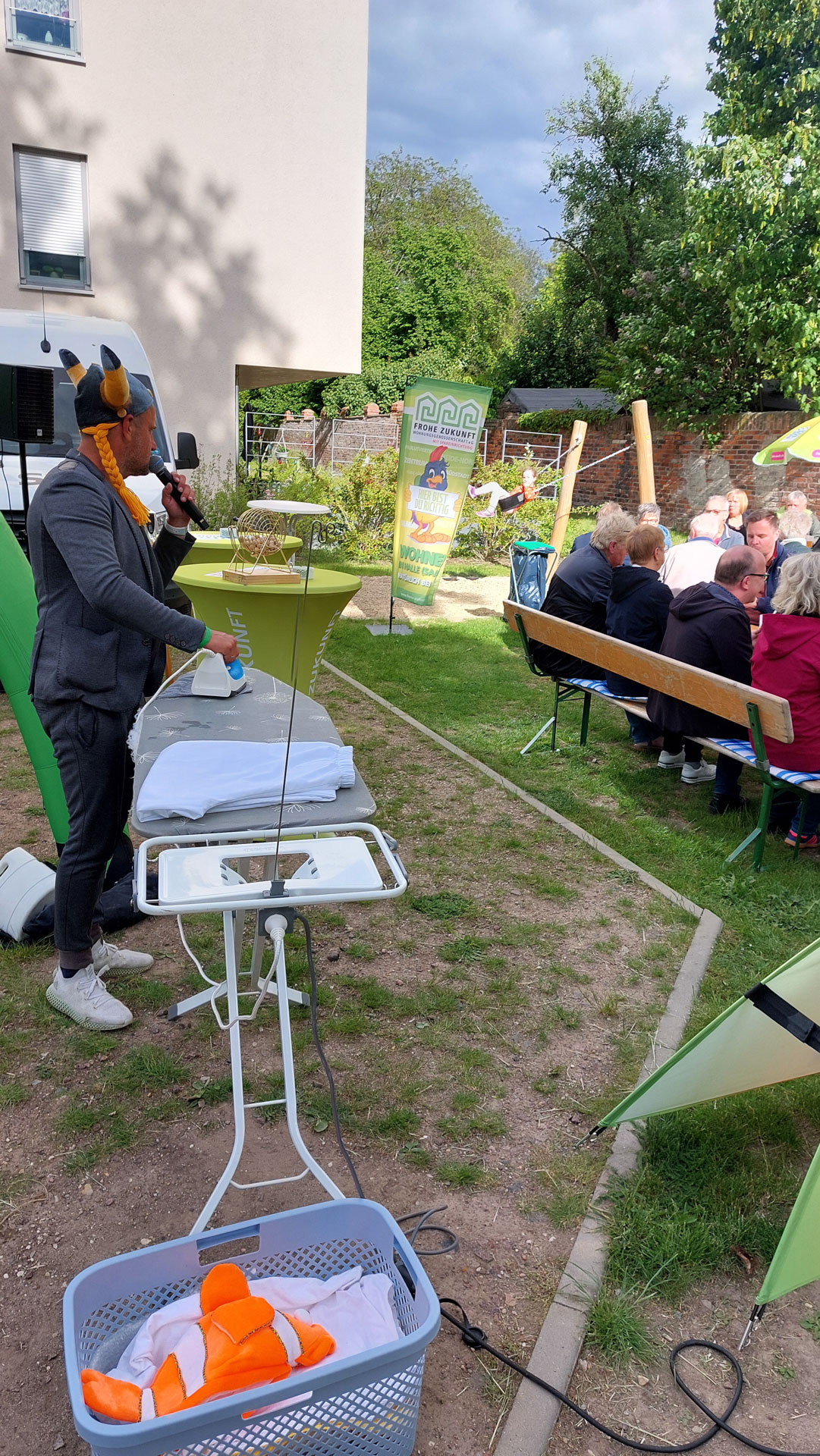 Zwischendurch bügelte Moderator Stefan Timm-Zock noch die Wäsche der Gäste. Echt verrückt! 😂
