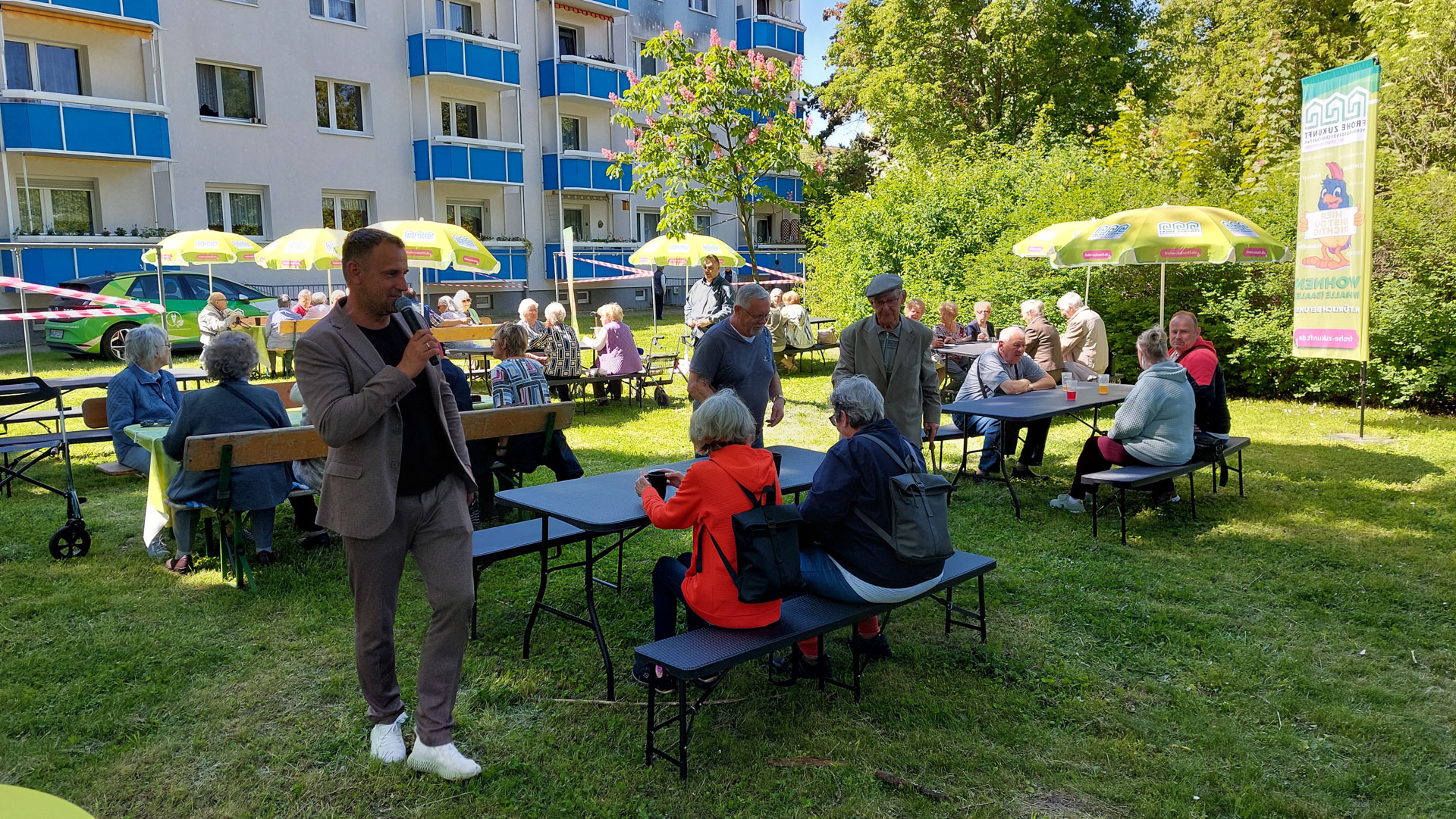 Dienstag, 13. Mai 2025 – Heute haben wir Halt in der Südstadt I gemacht und zusammen mit unseren Bewohnern bei Kaffee ☕️ & Kuchen 🍰, leckeren Sachen vom Grill 🌭 und kühlen Getränken 🍹 bei herrlichstem Wetter 🌞 gefeiert.