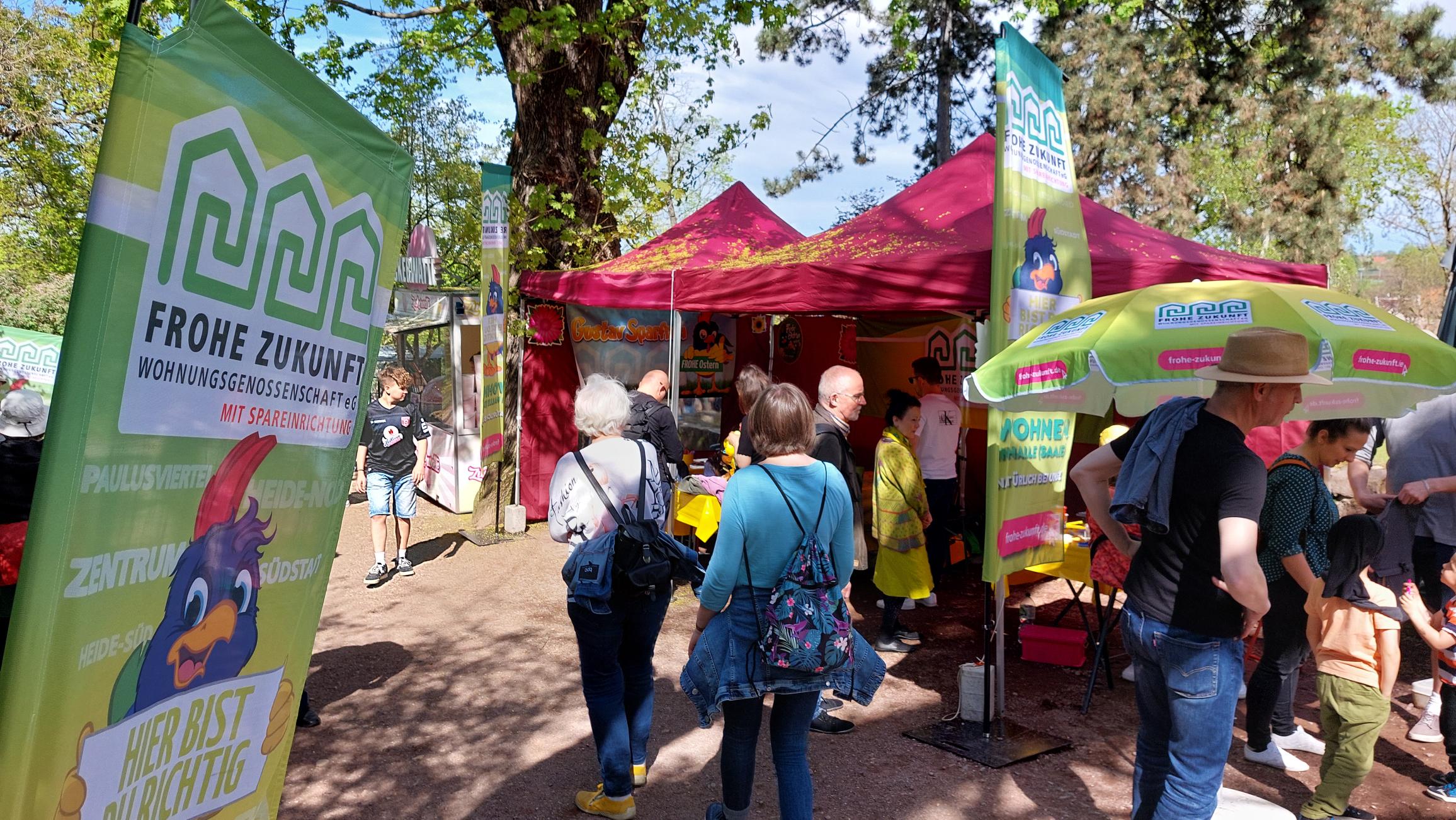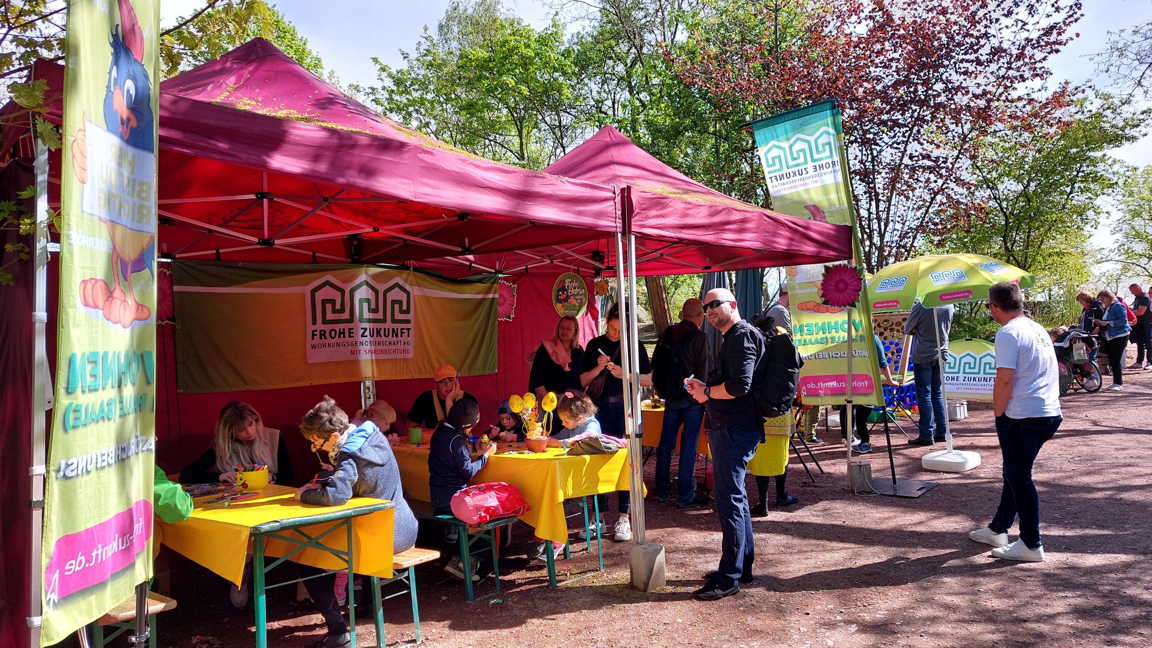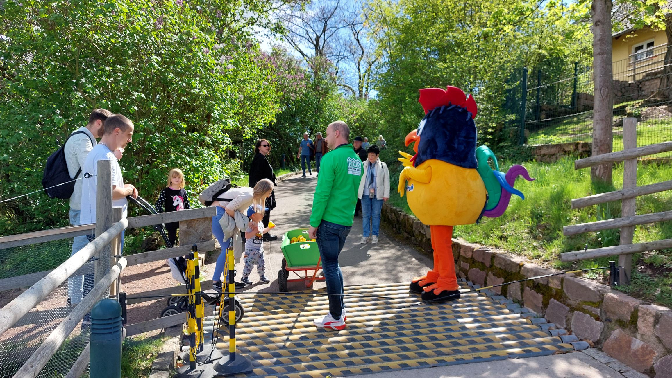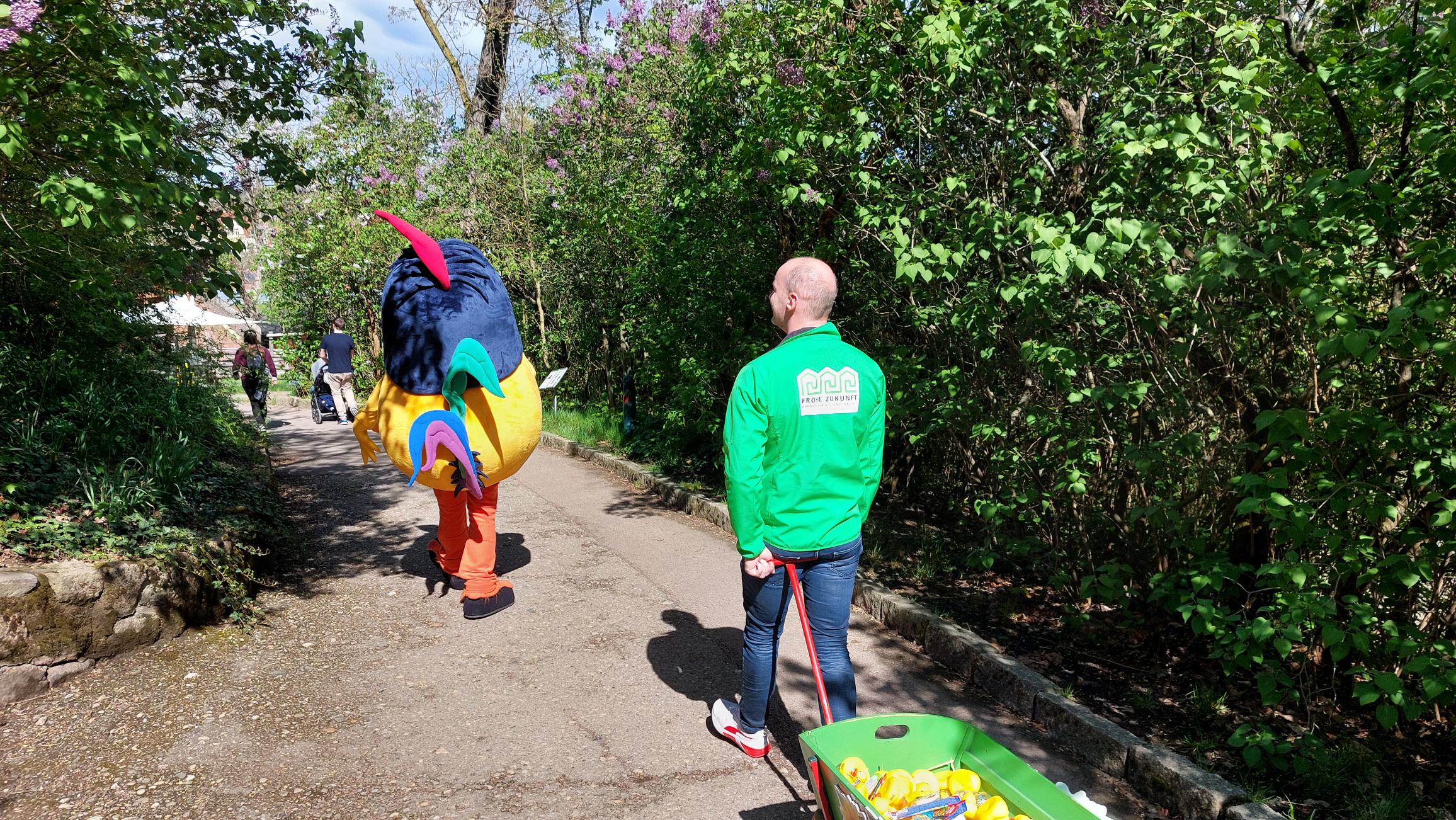 Beim Zoobummel begegnete einem Schaf „Pepe“ mit prall gefüllten Kiepen voller Naschereien sowie Jochen der Elefant auf seinem flotten Dreirad und Hahn Gustav Sparfroh von der FROHE ZUKUNFT Wohnungsgenossenschaft eG mit Zoomaskottchen Eric – Das Erdmännchen. Riesige Frühlingsblumen und andere fantastische Figuren auf Stelzen waren ebenfalls im Zoo unterwegs. Bei diversen kommentierten Fütterungen wurden die großen und kleinen Besucherlieblinge näher vorgestellt. An verschiedenen Aktionsständen konnte man zudem Basteln, die unzählige Vielfalt der Eier bestaunen und sein Wissen in einem Quiz ausprobieren oder sich von geschickten Kinderschminkern in ein Wunschtier verwandeln lassen.