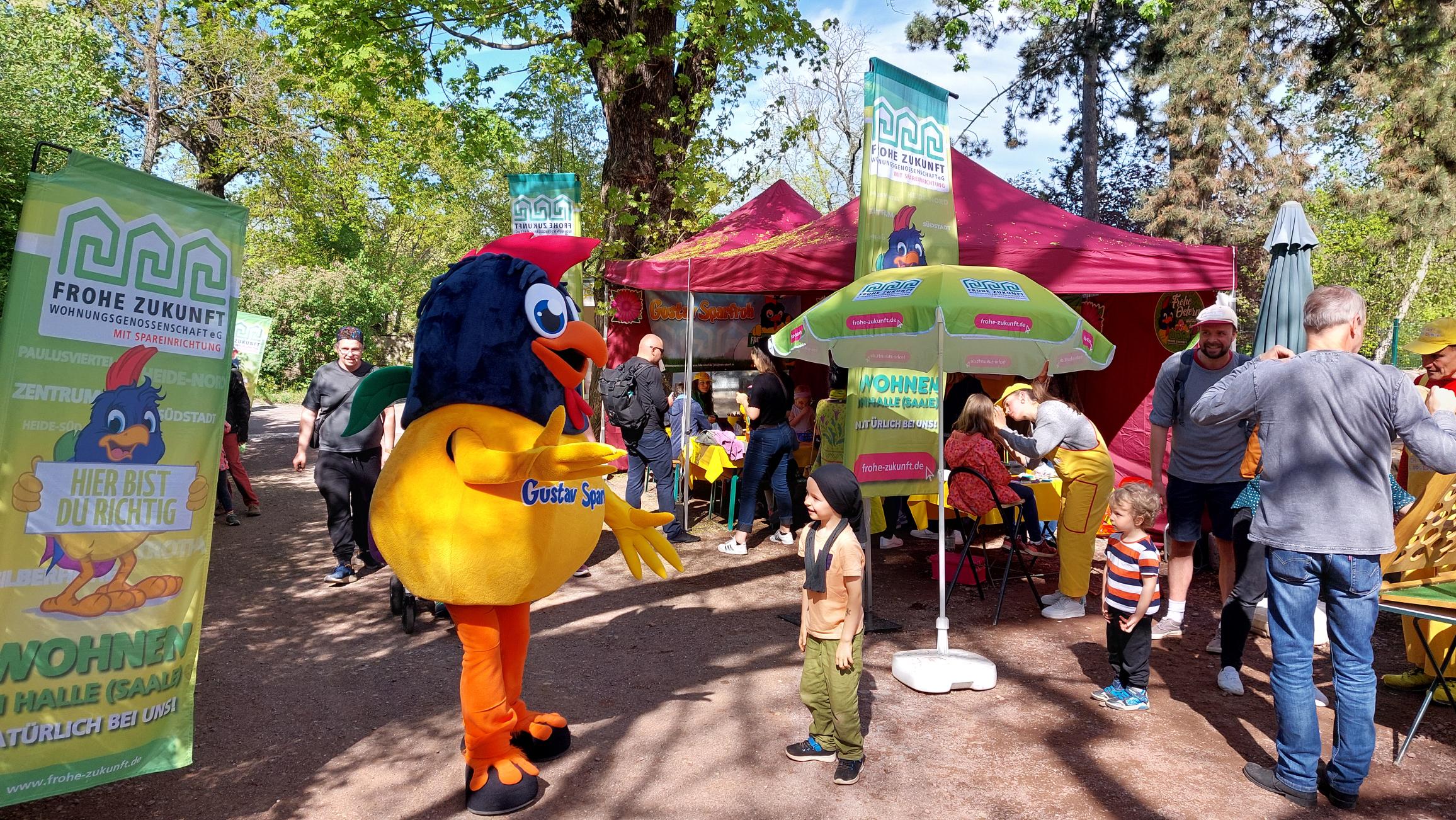 Ostersonntag & Ostermontag waren wir im Zoo Halle. Unser Gustav Sparfroh begrüßte alle Besucher und hatte für die Kleinsten eine süße Osterüberraschung dabei. An unserem bunt geschmückten Stand an der Vogelvoliere gab’s zudem Spiel & Spaß für alle Kinder.