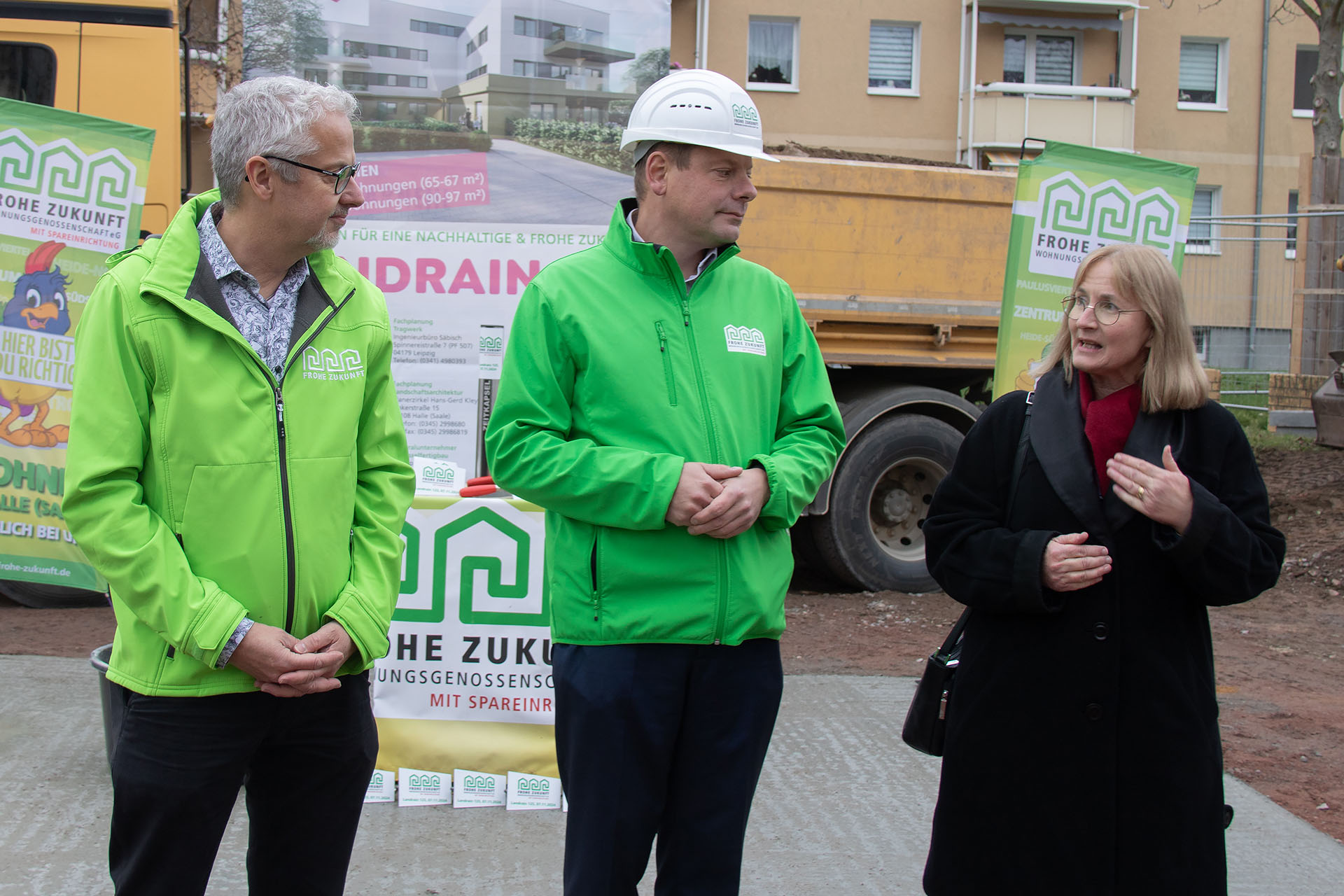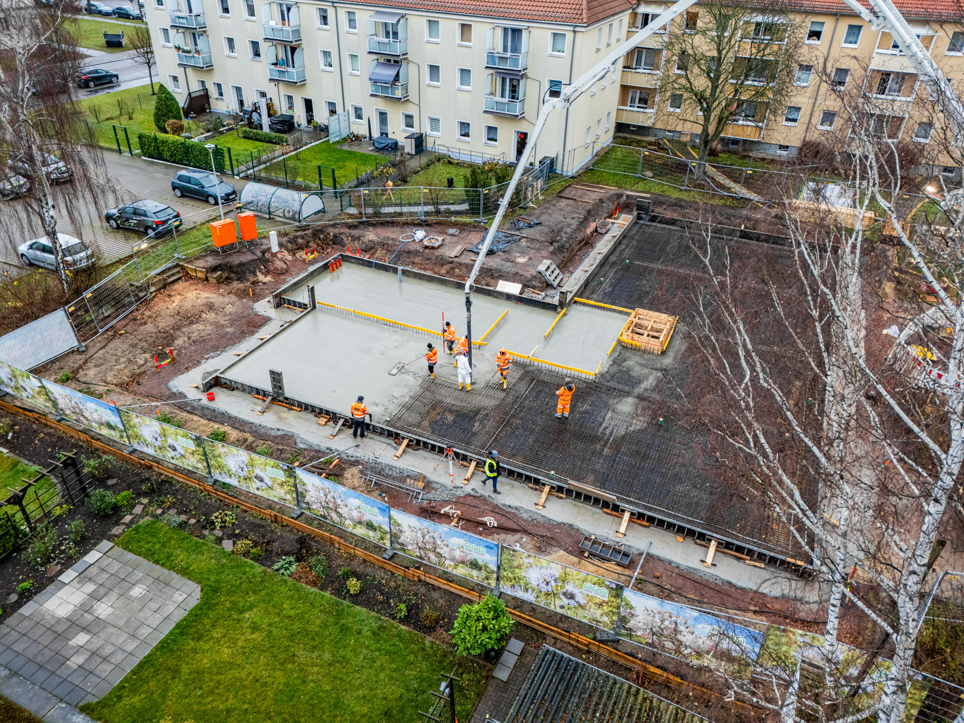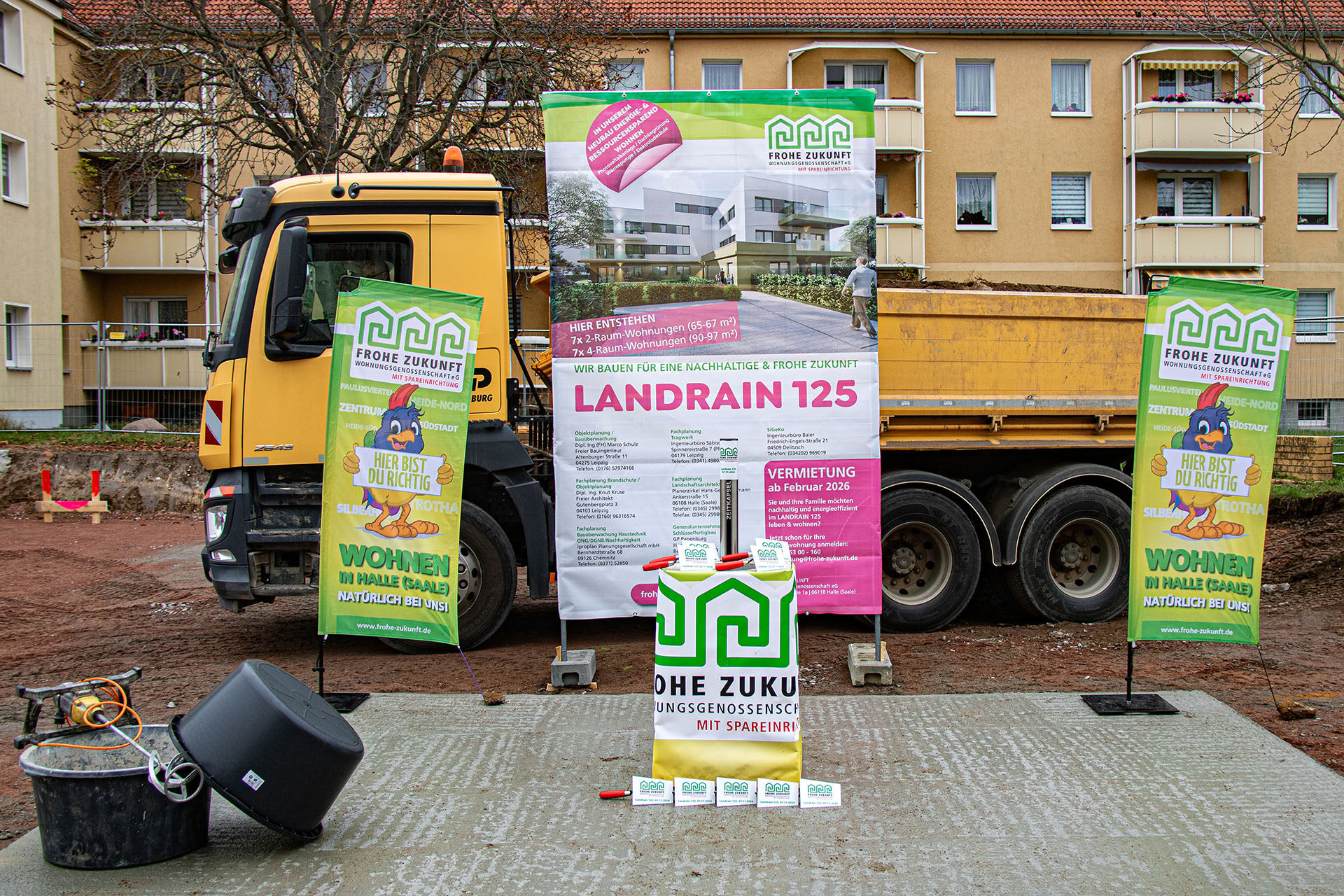 Die FROHE ZUKUNFT Wohnungsgenossenschaft eG investiert 4.710.000 Euro in den Neubau eines nachhaltigen Mehrfamilienhauses im beliebten Stadtgebiet Frohe Zukunft. Das dreigeschossige zzgl. Staffelgeschoss L-förmige Wohngebäude wird 14 barrierefreie Wohnungen mit Balkon oder Terrasse umfassen. Diese teilen sich in sieben 2-Raum-Wohnungen (65-67 m²) und sieben 4-Raum-Wohnungen (90-97 m²) auf. Jede Wohnung wird mit einem Abstellraum ausgestattet, um den Bewohnern ausreichend Stauraum zu bieten.