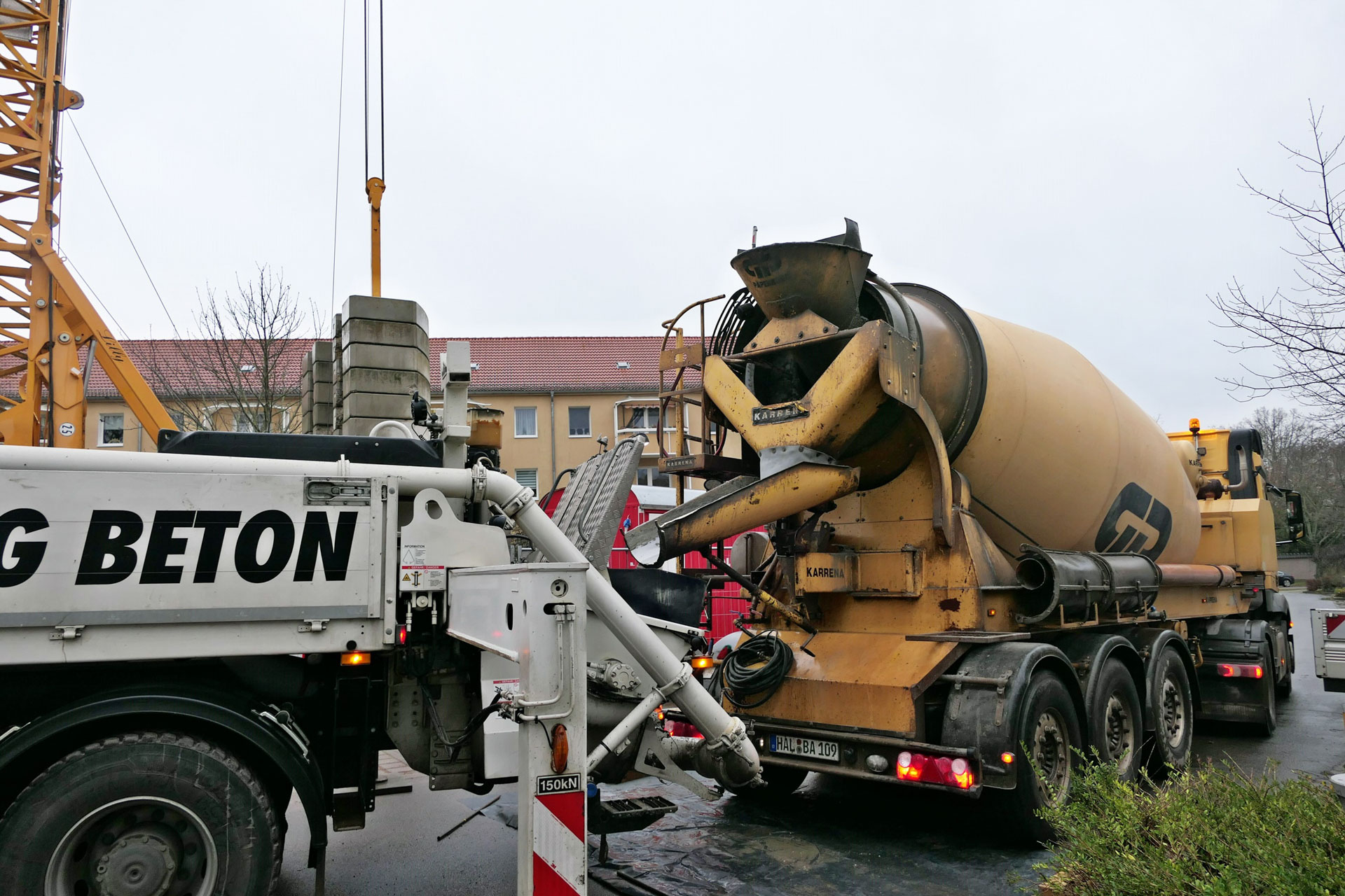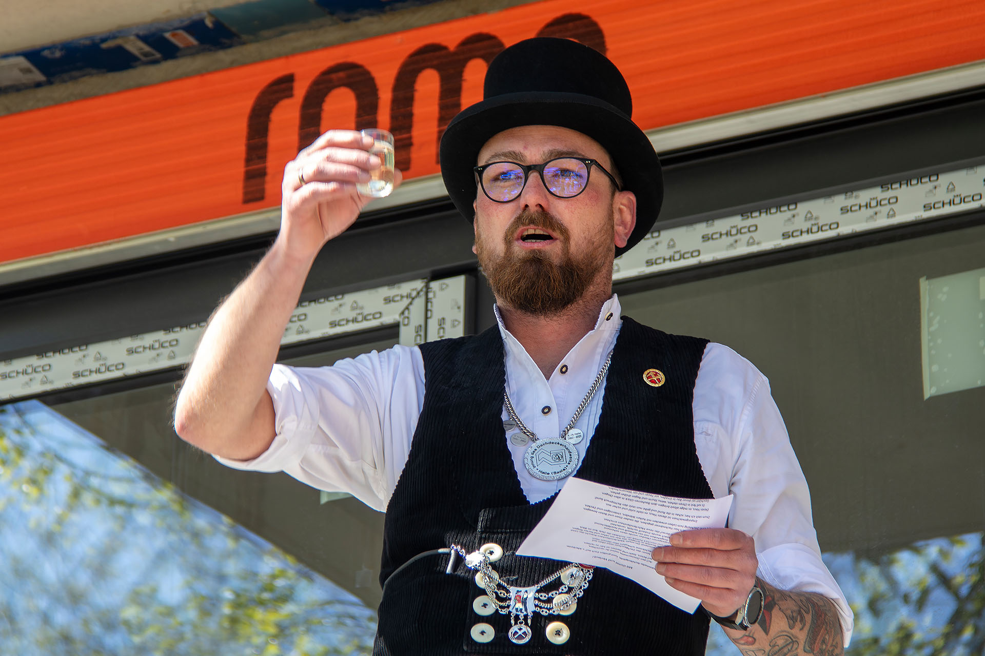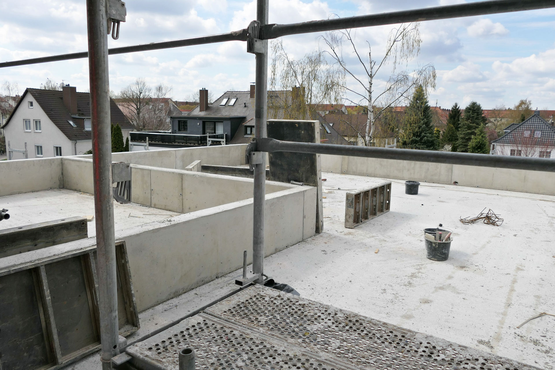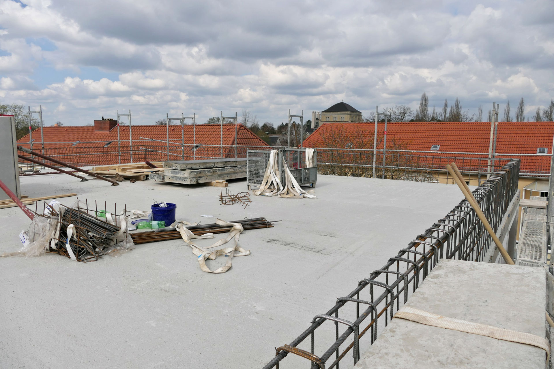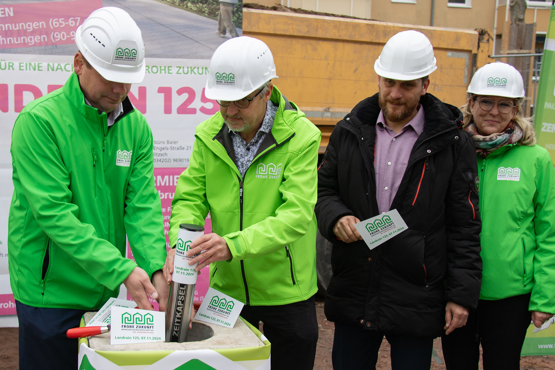 Unser Neubau nimmt zunehmend Form an und wächst stetig weiter. Seit der Grundsteinlegung im November hat sich auf unserer Baustelle viel getan: Der Rohbau ist mittlerweile fertiggestellt und nach nur fünf Monaten intensiver Bauzeit dürfen wir nun das Richtfest feiern. Zu diesem besonderen Anlass kamen am Montag, 28.04.2025 Aufsichtsrat, Vertreter, Repräsentanten anderer Wohnungsunternehmen sowie der Stadt und natürlich die Bauarbeiter zusammen, um feierlich die Richtkrone zu setzen. Unser Vorstand nahm sich im Anschluss viel Zeit für die Anfragen der anwesenden Presse und dem gemeinsamen Austausch mit Gewerken und Gästen.