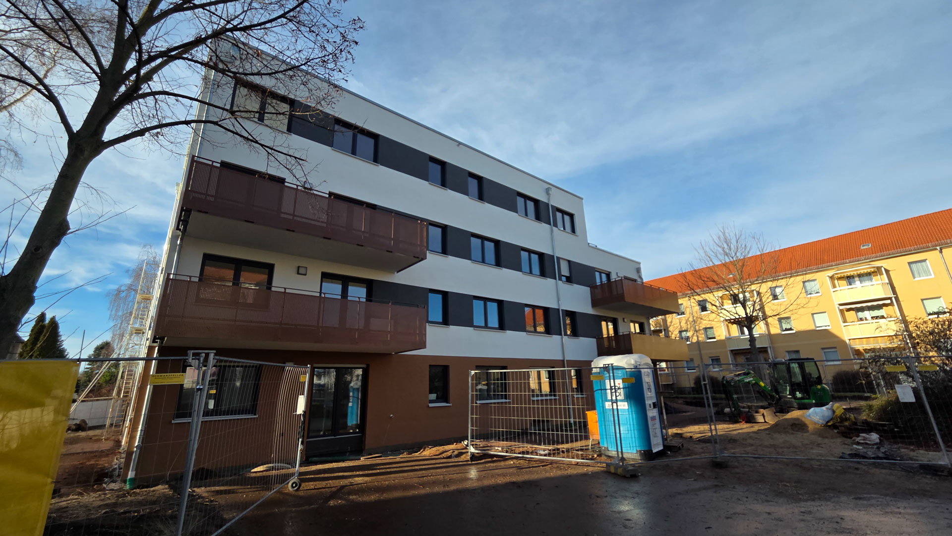 Die FROHE ZUKUNFT Wohnungsgenossenschaft eG investierte 4.710.000 Euro in den Neubau eines nachhaltigen Mehrfamilienhauses im beliebten Stadtgebiet Frohe Zukunft. Das dreigeschossige zzgl. Staffelgeschoss L-förmige Wohngebäude umfasst 14 barrierefreie Wohnungen mit Balkon oder Terrasse. Diese teilen sich in sieben 2-Raum-Wohnungen (65-67 m²) und sieben 4-Raum-Wohnungen (90-97 m²) auf. Jede Wohnung ist mit einem Abstellraum ausgestattet, um den Bewohnern ausreichend Stauraum zu bieten.