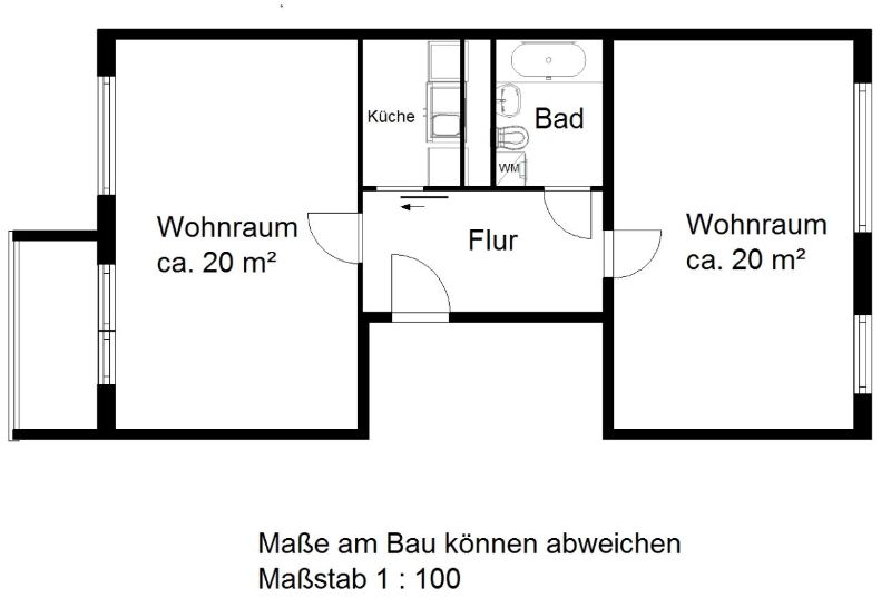 Single-Küche, Badewanne, BalkonAusstattungsbeschreibung