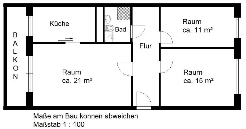 3-Zimmerwohnung mit Balkon und ebenerdiger Dusche