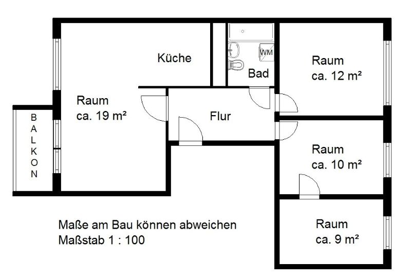 Ganz unten, 4 Zimmer inkl. Einbauküche.