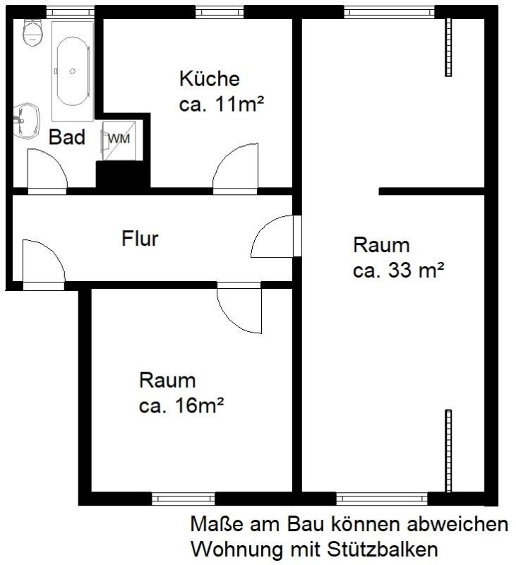 Bad mit Fenster, Küche mit Fenster, Waschmaschinenanschluss im Bad, BadewanneLagebeschreibung