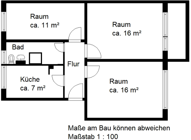 Bad mit Fenster, bis 2. OG oder Aufzug, Küche mit Fenster, Waschmaschinenanschluss im Bad, Dusche, BalkonAusstattungsbeschreibung