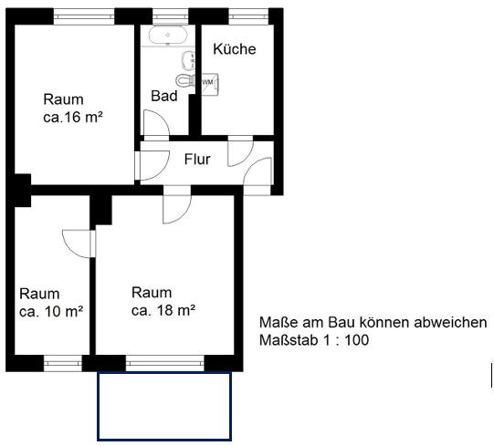 Bad mit Fenster, bis 2. OG oder Aufzug, Küche mit Fenster, Waschmaschinenanschluss in der Küche, Badewanne, Balkon