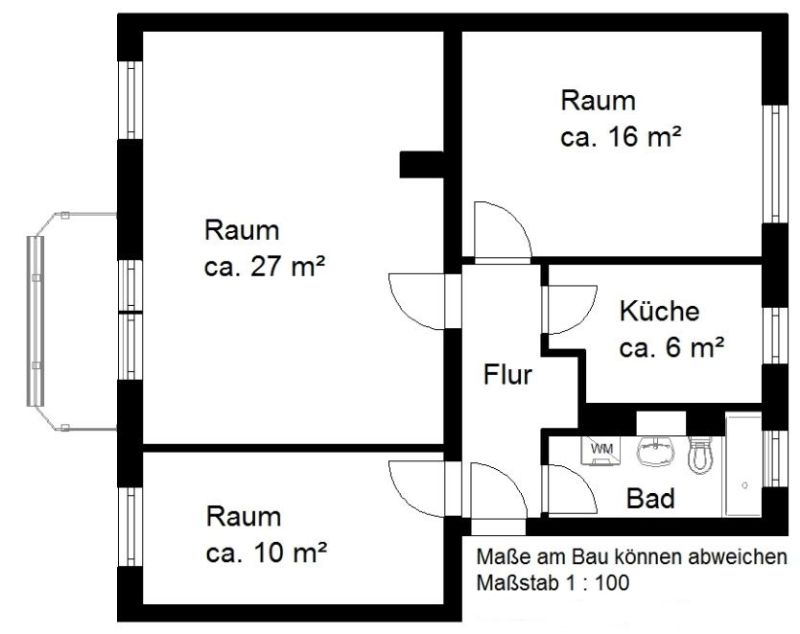 Bad mit Fenster, Küche mit Fenster, Waschmaschinenanschluss im Bad, Badewanne, BalkonAusstattungsbeschreibung