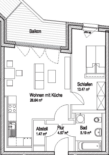 bis 2. OG oder Aufzug, Waschmaschinenanschluss im Bad, Badewanne, BalkonAusstattungsbeschreibung
