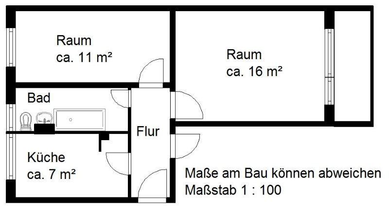 Bad mit Fenster, Küche mit Fenster, Waschmaschinenanschluss in der Küche, Badewanne, BalkonLagebeschreibung