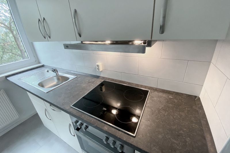 Diese Wohnung ist mit einer Einbauküche ausgestattet.